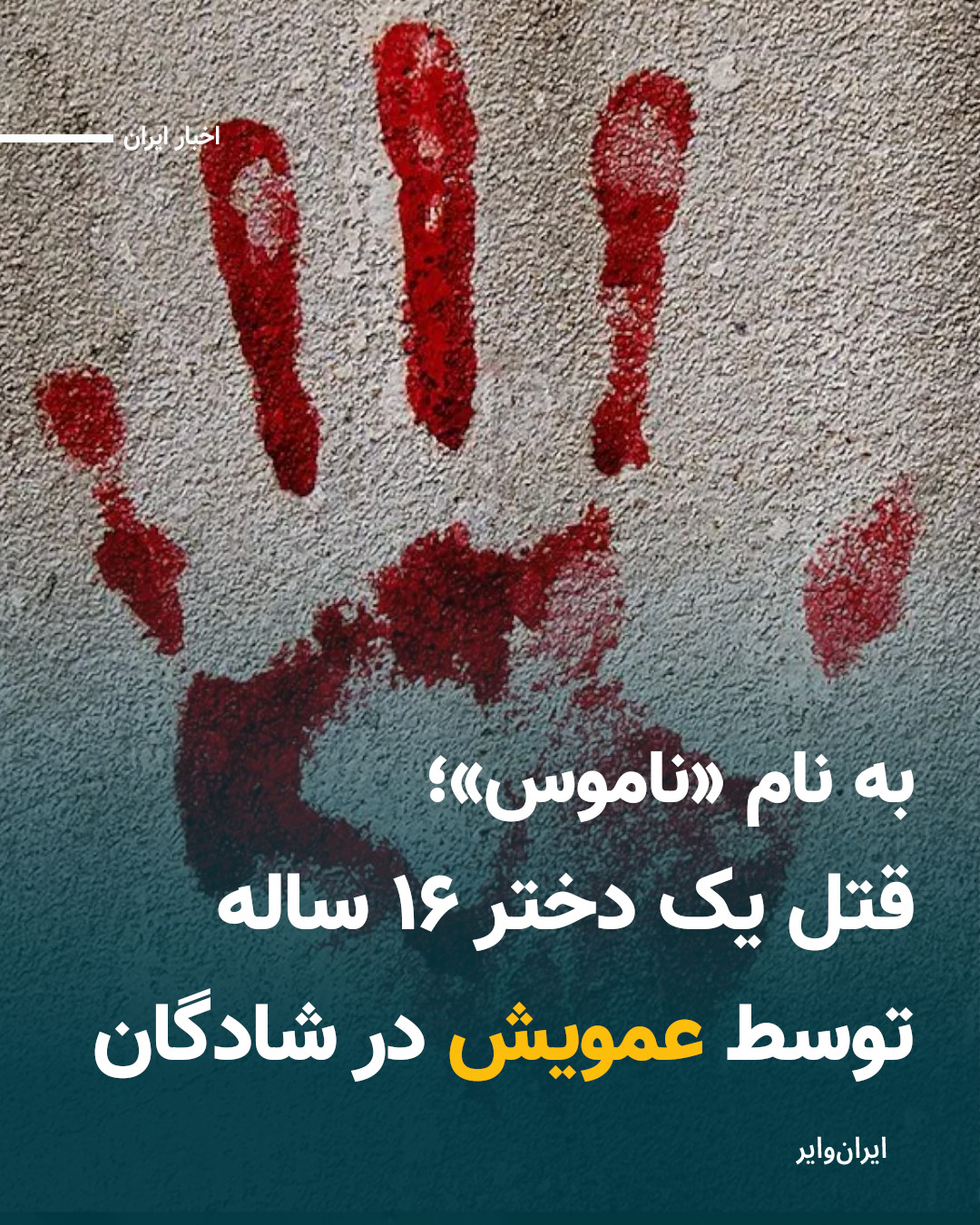 پایگاه خبری رکنا از قتل یک دختر ۱۶ ساله اهل شادگان توسط عمویش خبر داده و انگیزه این قتل را «مسائل ناموسی» اعلام کرده است.
